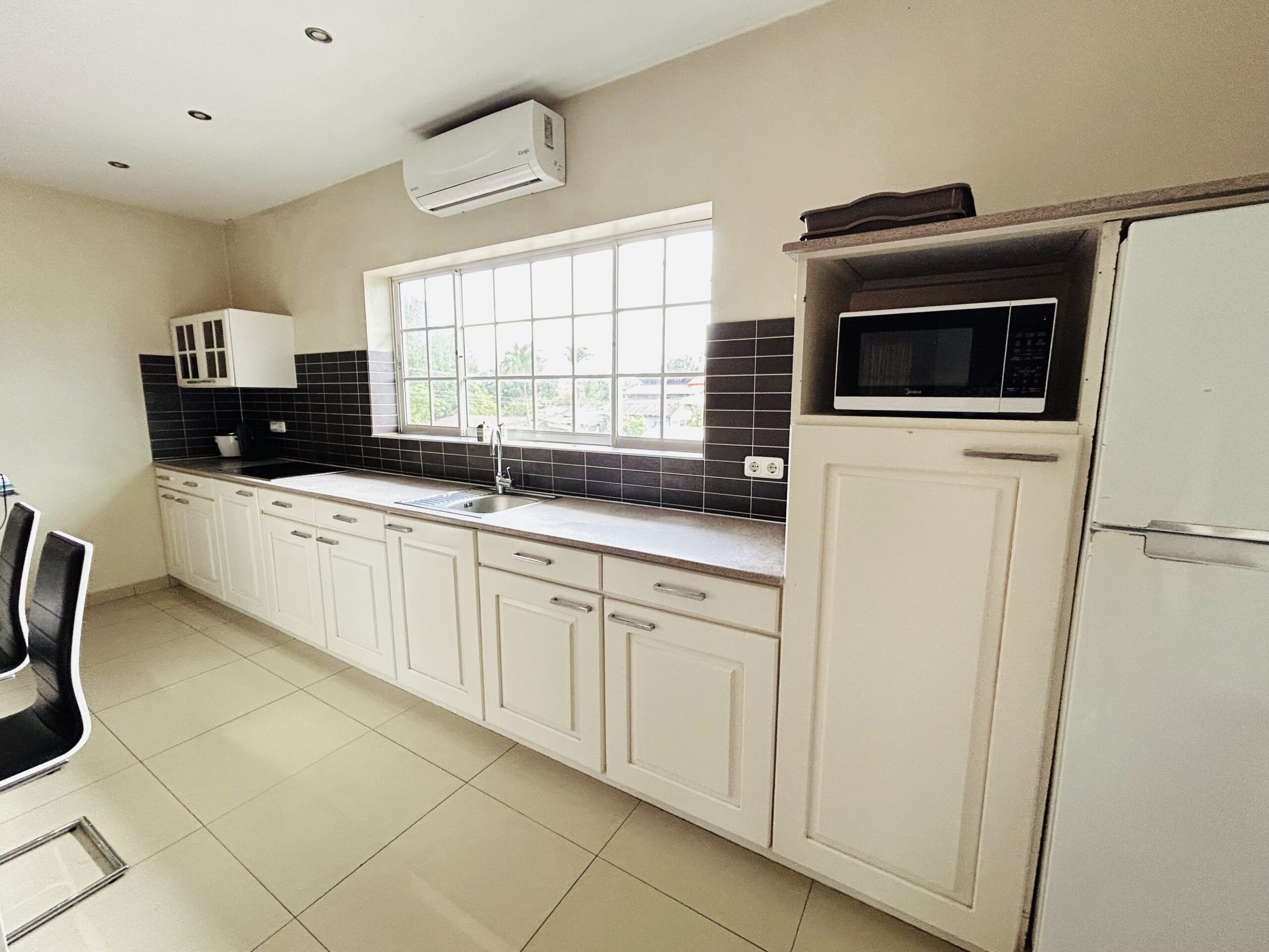 Goed ingericht en ruim appartement in een levendige omgeving in Paramaribo Noord. U kunt genieten van een drankje op uw balkon maar ook een van de lokale Braziliaanse barretjes in de buurt opzoeken. De Tulip Supermarkt met een ruim assortiment aan Europese producten is op loopafstand en met 5 minuten rijden bent u in het uitgaanscentrum of de historische binnenstad van Paramaribo. AC in de woonkamer!