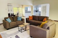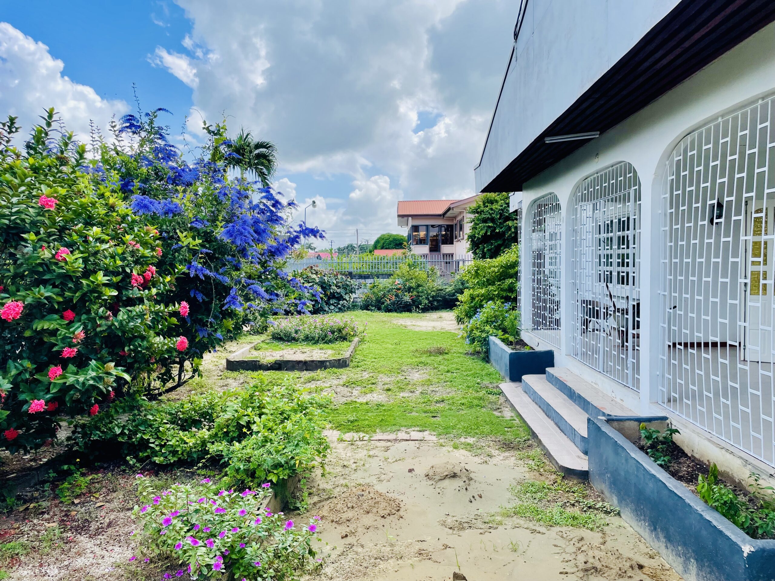 Indeling: het terrein is afgesloten d.m.v. een hek met een poort. Via de ruime carport komt u in de woning. Aan ruimte zult u geen tekort hebben, zowel in als rondom de woning. De woonkamer is voorzien van airconditioning en is verbonden met de open keuken met een eettafel gedeelte. De keuken heeft een moderne look met voldoende opbergruimte. Via de woonkamer kom je zowel op het voor- en achterterras waar je heerlijk kunt genieten van de ruime tuin voorzien van diverse lokale bloemen, planten en bomen.